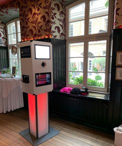 Die Technik unserer Fotoboxen ist das A und O. Wir Arbeiten nicht mit Tablets und deren eingebauten Kameras, wir haben einen 15-Zoll großen Touch-Laptop eingebaut, so das ihr immer eine gute Übersicht der aktuellen Fotos habt. Dieser interagiert mit einen Spiegelreflexkamera von Canon, für gestochen scharfe Bilder. Außerdem haben wir keinen Blitz, wer möchte schon immer im Hintergrund einer Veranstaltung, ständig das Blitzen sehen. Wir arbeiten mit einem stufenlosen LED-Panel, dass jede Räumlichkeit ausreichend ausleuchtet, den Rest besorgt die Automatikbelichtung der Kamera.
